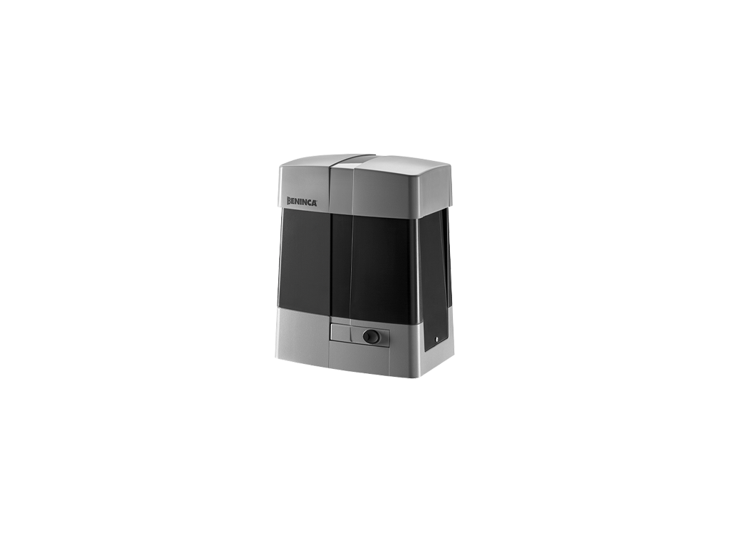 24 Vdc gear motor for intensive use with integrated control unit and virtual encoder | Standby power consumption complies with European regulation (EU) 2023/826 | Switching power supply 115/230 Vac which reduces energy consumption and ensures a long lifespan of the actuator | The control unit, located on the top of the motor, facilitates wiring operations | The virtual encoder enables optimal management of slowing-down phases, movement tracking (STC system) and torque management in relation to the position of the gate, guaranteeing maximum safety | Operation guaranteed even in the event of a power supply failure through batteries that can be perfectly integrated in the motor | Anti-crushing system with amperometric obstacle detection | Designed for the connection of the X.BE accessory in order to be integrated with KNX domotics installations and the programming through the app BeUP and the interface PRO.UP | Steel anti-vandal protective cover (optional)