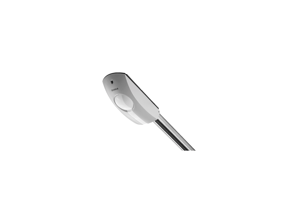 24 Vdc gear motor for intensive use, with integrated control unit and encoder | Adjustable stroke with one mechanical stop included in the belt rails and two in the chain rails | Anti-crushing system with amperometric obstacle detection | Operation guaranteed even in the event of a power supply failure through batteries that integrate perfectly into the motor | Evolved electronics with display and energy saving courtesy light | The encoder guarantees maximum safety and precision while the gate is moving | Quick hooking system for connecting the arm to the door plate