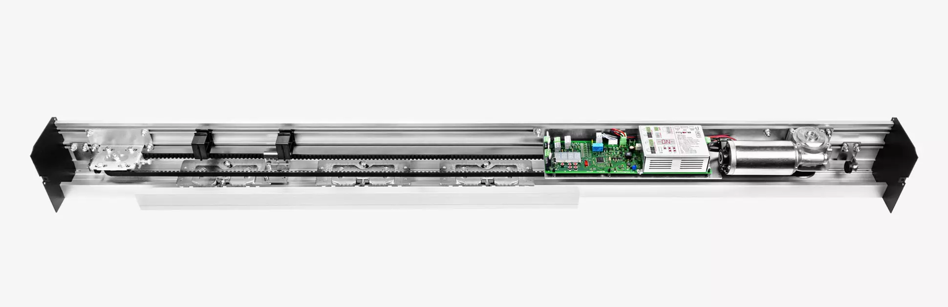 The Luce Heavy sliding doors are ideal for automated pedestrian access points characterised by particularly heavy or large-sized leaves in private and public locations: offices, shops and commercial businesses in general. They are quick and easy to install, with continuous operation, guaranteeing top performance and reliability. Available in single-leaf (up to 400 kg) or double-leaf (up to 250+250 kg) versions. Operator for sliding doors with three-wheeled carriage, which ensures that the doors are very stable and easy to adjust, both in height and depth. The operator has a control unit with LED alphanumeric display, full-range switching power supply (100-240 V 50/60 Hz) and battery charger. The presence of a USB connector makes it quick and easy to update the firmware as well as to copy parameters and operating logics to a new system instantly. Continuous operation guaranteed.
