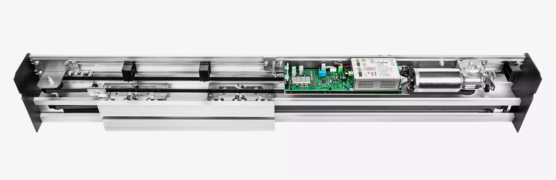 The Luce T telescopic sliding door operators are perfect for automating locations where there is limited space to the side of the passage. Available in two-leaf (100+100 kg) or four-leaf (70+70+70+70 kg) versions. Operator for sliding doors with three-wheeled carriages, which ensures that the doors are very stable and easy to adjust, both in height and depth. The operator has a control unit with LED alphanumeric display, full-range switching power supply (100-240 V 50/60 Hz) and battery charger. The presence of a USB connector makes it quick and easy to update the firmware as well as to copy parameters and operating logics to a new system instantly. Continuous operation guaranteed.